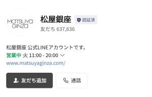 下のリンクからLINEを起動させて、「松屋銀座」のアカウントと友だちになると無料でスタンプがGETできます☆