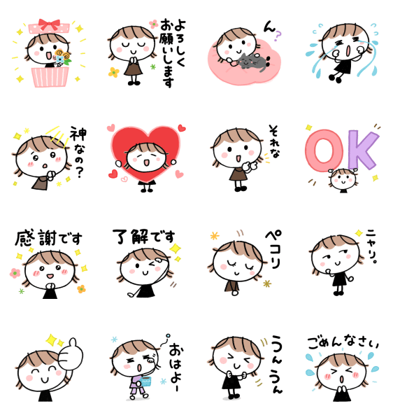 ミルクティ女子はスタンプクリエイター・ひらりーーさんの人気スタンプ。ひらりーーさんのスタンプはいろんなテーマや季節感に合わせたデザインが好評で、女性に特にファンが多いです。