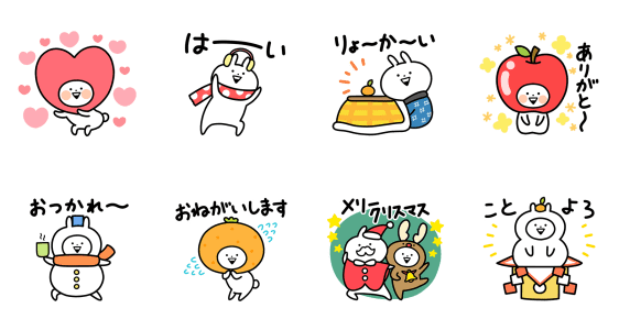 くおんさんの人気スタンプ「うさぎゅーん!」の年末年始に使える冬スタンプ☆