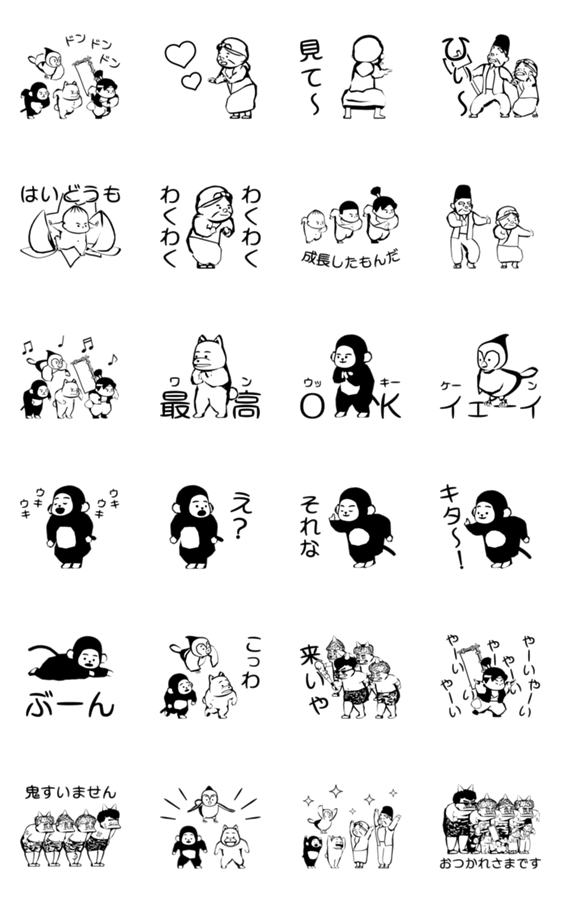 コメアニメさんの最新スタンプ「おどる!むかしストリート ‐桃男‐ vol.1」「おどる!むかしストリート ‐桃男‐ vol.2」が同時発売!
