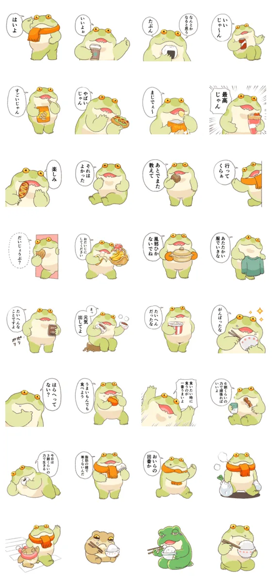 カエルはスタンプクリエイター・たろさんの代表作。カエルの特徴を捉えた愛らしいイラストがカエル好き・生物好きの人から支持を集め一躍人気スタンプの仲間入りを果たしました。本作ではタピオカガエルをモチーフにしたタピオカさんが主役となってます。
