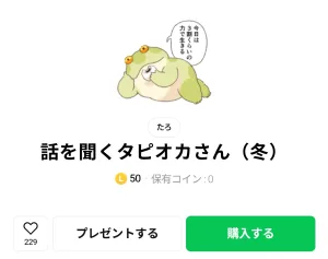 11月28日に出たスタンプ、「たろ」の「話を聞くタピオカさん(冬)」のダウンロード方法やこのスタンプの特徴を解説しています。