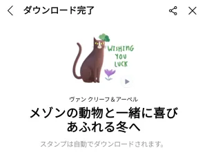 12月1日に出た無料スタンプ、「ヴァン クリーフ&アーペル」の「メゾンの動物と一緒に喜びあふれる冬へ」をダウンロード方法やこの無料スタンプを実際にゲットしてトークに使う方法を解説しています