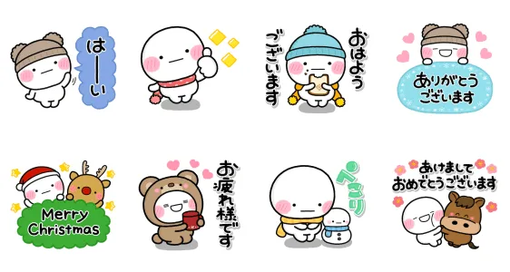 冬&年末年始のやさしい敬語♡しろまる 無料スタンプをダウンロード↓↓
