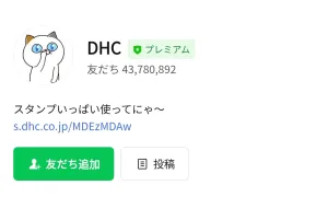 下のリンクからLINEを起動させて、「DHC」のアカウントと友だちになると無料でスタンプがGETできます☆