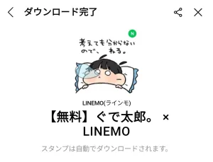 12月16日に出た無料スタンプ、「LINEMO(ラインモ)」の「【無料】ぐで太郎。 × LINEMO」をダウンロード方法やこの無料スタンプを実際にゲットしてトークに使う方法を解説しています