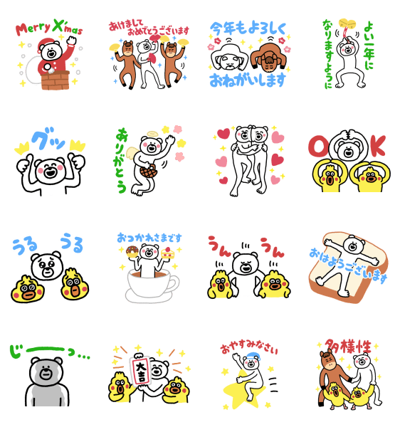 【年末年始はこれだ!けたくま×ポインコ 無料スタンプの使い方:例】