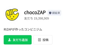 下のリンクからLINEを起動させて、「chocoZAP」のアカウントと友だちになると無料でスタンプがGETできます☆