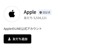 下のリンクからLINEを起動させて、「Apple」のアカウントと友だちになると無料でスタンプがGETできます☆