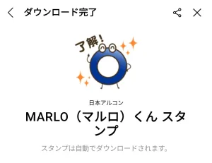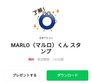 1月13日に出た無料スタンプ、「日本アルコン」の「MARLO(マルロ)くん スタンプ」をダウンロード方法やこの無料スタンプを実際にゲットしてトークに使う方法を解説しています