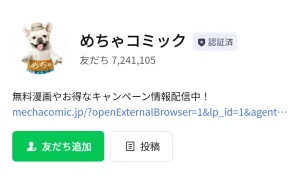 下のリンクからLINEを起動させて、「めちゃコミック」のアカウントと友だちになると無料でスタンプがGETできます☆