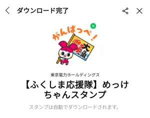 2月17日に出た無料スタンプ、「東京電力ホールディングス」の「【ふくしま応援隊】めっけちゃんスタンプ」をダウンロード方法やこの無料スタンプを実際にゲットしてトークに使う方法を解説しています