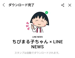 2月17日に出た無料スタンプ、「LINE NEWS」の「ちびまる子ちゃん × LINE NEWS」をダウンロード方法やこの無料スタンプを実際にゲットしてトークに使う方法を解説しています