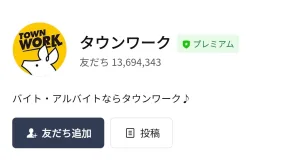下のリンクからLINEを起動させて、「タウンワーク」のアカウントと友だちになると無料でスタンプがGETできます☆