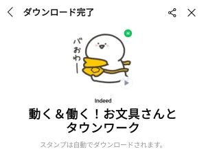 2月17日に出た無料スタンプ、「Indeed」の「動く&働く!お文具さんとタウンワーク」をダウンロード方法やこの無料スタンプを実際にゲットしてトークに使う方法を解説しています