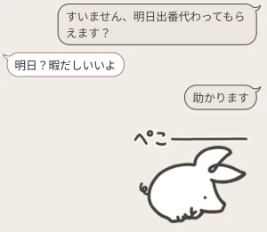いろんなシチュエーションに沿った使用例を用意しました。どんな時に使えるスタンプなのかなど、この無料スタンプを使いどころなどの参考にしてください。