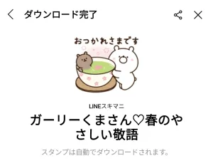 2月24日に出た無料スタンプ、「LINEスキマニ」の「ガーリーくまさん♡春のやさしい敬語」をダウンロード方法やこの無料スタンプを実際にゲットしてトークに使う方法を解説しています