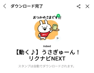 2月24日に出た無料スタンプ、「Indeed」の「【動く♪】うさぎゅーん!リクナビNEXT」をダウンロード方法やこの無料スタンプを実際にゲットしてトークに使う方法を解説しています