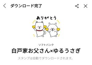 2月25日に出た無料スタンプ、「ソフトバンク」の「白戸家お父さん×ゆるうさぎ」をダウンロード方法やこの無料スタンプを実際にゲットしてトークに使う方法を解説しています