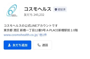 下のリンクからLINEを起動させて、「コスモヘルス」のアカウントと友だちになると無料でスタンプがGETできます☆