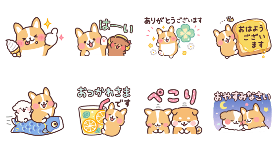 つじなつみさんの人気スタンプ「まるまるコーギー」とコラボした敬語スタンプ☆