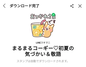 4月7日に出た無料スタンプ、「LINEスキマニ」の「まるまるコーギー♡初夏の気づかい&敬語」をダウンロード方法やこの無料スタンプを実際にゲットしてトークに使う方法を解説しています