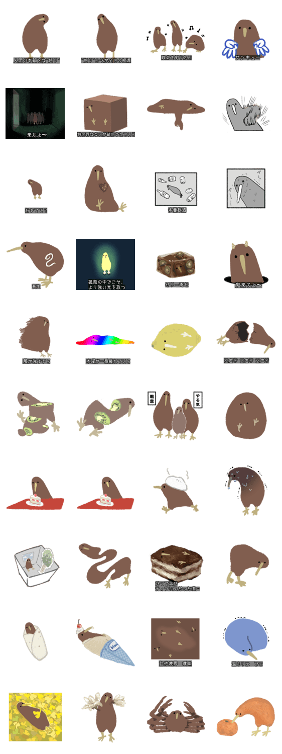 臆病で内向的な性格で知られるキーウィの裏の顔が垣間見えるシュールなスタンプです♪