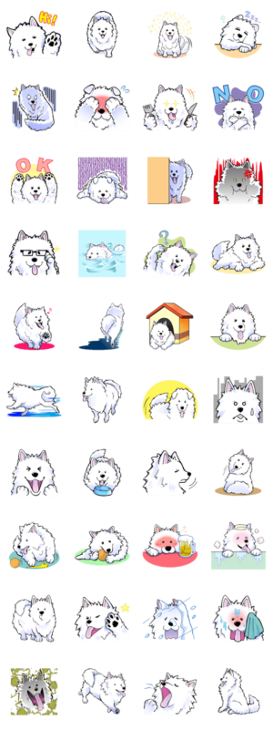 モフモフとした毛並みがかわいい、サモエドのスタンプです。おすそわけ より発売