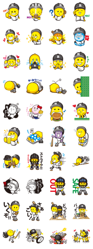 野球が大好きな「レモン君」のスタンプが登場。野球大好き!そうでない方もご一緒にどうぞ♪おたべまこと より発売
