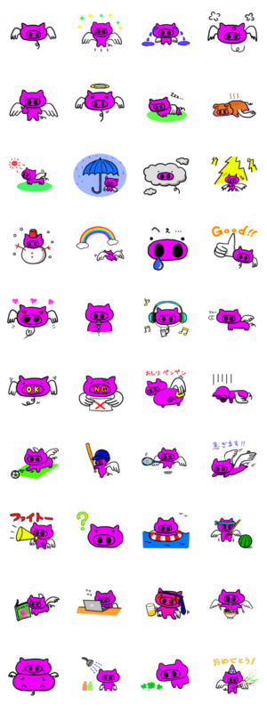 背中に羽の生えた怪物豚『モンストン』がLINEスタンプに登場!ぶた好きにもそうでない人にもおすすめのかわいいブタ型モンスターです☆nao より発売