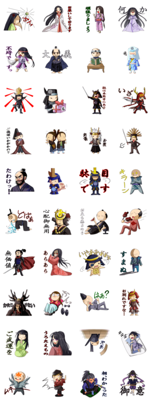 日本の歴史好きに贈る人気の戦国武将スタンプ!日本が誇る人気武将が勢揃い!徳川家康、石田三成、上杉謙信、伊達政宗など総勢40人の武将やキャラが大集合☆ creator:鯨株式会社OPTIAX / 専門学校デジタルアーツ東京 より発売