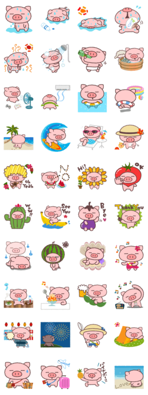 夏を楽しむぶたたのスタンプです。decosmith より発売