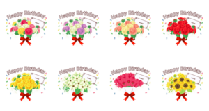 花束に誕生日カードを添えて スタンプ画像一覧