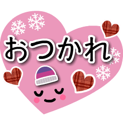 雪が降る背景がオシャレ♥大人女子の可愛いシンプルめガーリーフェイス!冬の温か大きめデカでか文字!毎日使える敬語,挨拶とピンクや赤ハート入り女性向け基本セット!あくあまりん より発売