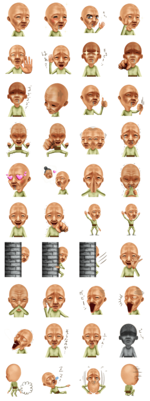 ちょっとキモくて、ちょっとかわいくて、ちょっとムカツク表情のおじいちゃんスタンプです。琥珀 より発売