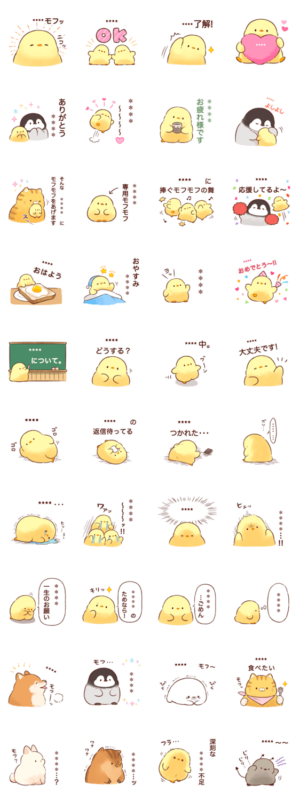 もふピヨのカスタムスタンプが登場♪名前や好きな言葉を入れてもふもふ達を喋らせてみてね。さんぽいも より発売