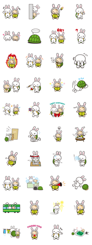 うしろ姿はまるでかめうさぎ!?お互いの姿をマネして仲良く暮らす、うさぎとかめのちょっと不思議な兄弟です。実は2人ともデベソに悩み中・・・株式会社エスケイジャパン より発売
