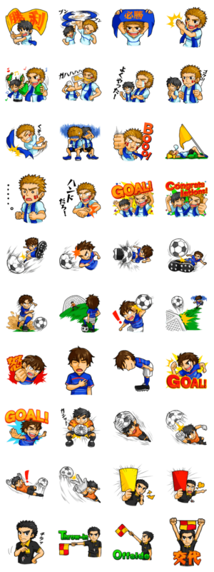 サッカーの感動をスタンプで共有しよう!応援に役立つスタンプを選手、サポーター、審判のバリエーションで用意しました。