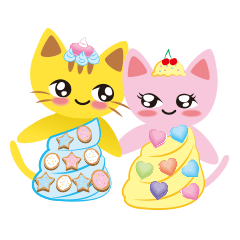 スイーツデコされたラブラブにゃんこたち。甘い生活のひとこまにどうぞ。ミヤ吉 より発売