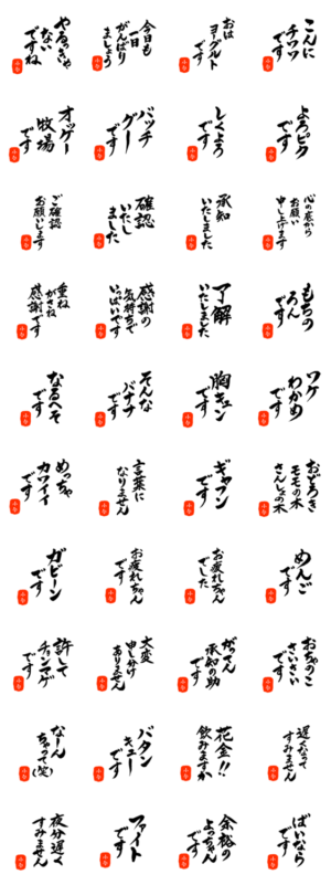 小南さん用死語入り筆文字敬語 スタンプ画像一覧