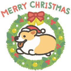 コーギーのクリスマス用スタンプです。クリスマスの賑わいにほんの少しコギの成分が欲しくなったらお使い下さい。たきむら りゅう より発売