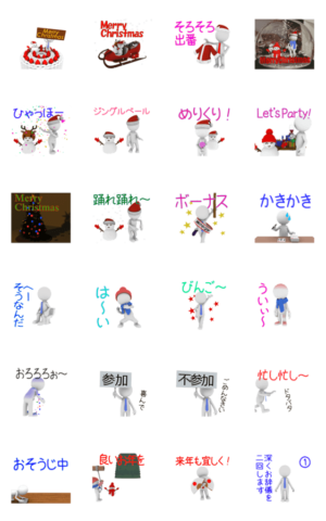 動く▶白い3D小人(年末Ver) スタンプ画像一覧