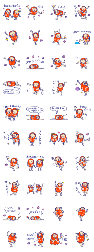お祝いだるま 誕生日スタンプ スタンプ画像一覧