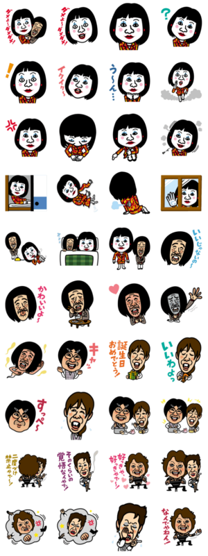 ダメよ~ダメダメのフレーズで世間にトラウマをばら撒く日本エレキテル連合のスタンプが登場!未亡人朱美ちゃん3号など毎日の生活に役立つ便利スタンプを友達と使ってね!株式会社タイタン より発売
