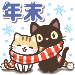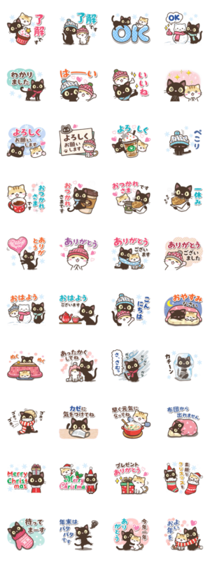 黒猫のクロと、ときどき登場する三毛猫のミケの年末・冬スタンプです♪もちろんクリスマスもご用意♡タナアキ より発売