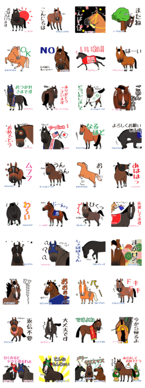 おがわじゅりの描く、キャロットクラブの馬たちのスタンプ登場~ 第1弾はGI・JpnI勝ち馬!
