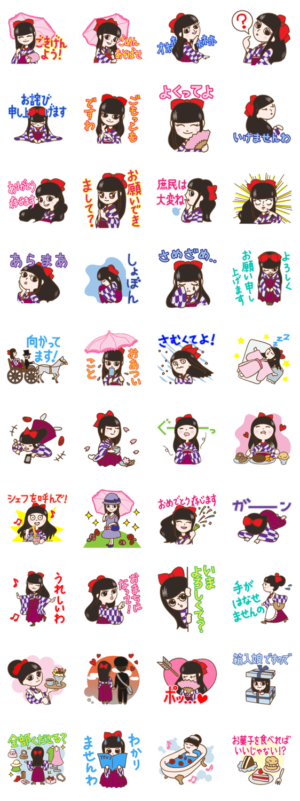 モボ、モガ必見!大正ロマン〜昭和初期のハイカラ・モダンガールな女学生、なでしこの優雅な山の手言葉やお嬢様ことばのスタンプ!パンがなければお菓子を食べれば良くて?メレンゲ より発売