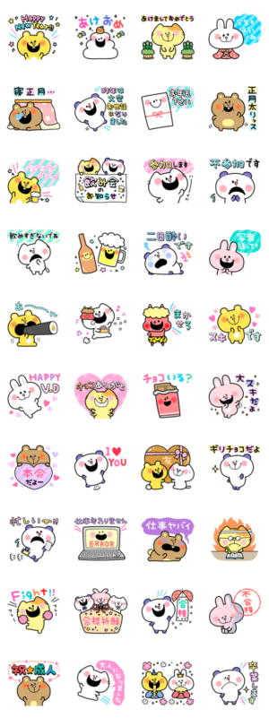 1月〜3月のイベントに使えるスタンプ。お正月、新年会、飲み会、成人式、バレンタイン、節分、受験、年度末の仕事、お雛様など!あにまるデコパックの新春シーズン編。Mie Design より発売