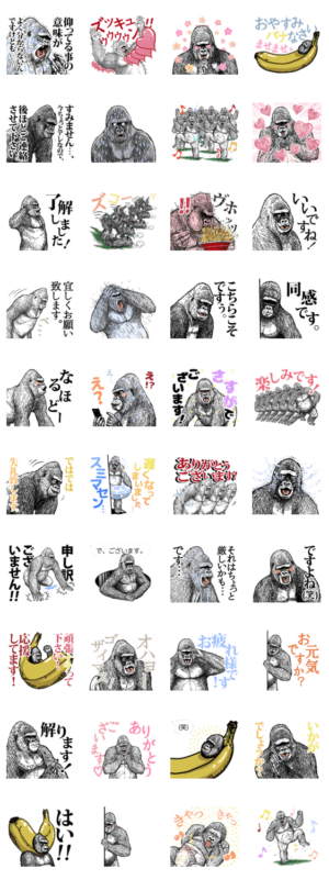 仲の良い先輩や目上の方にも使いやすい、おちゃめな ごりら のスタンプです。もふごり より発売