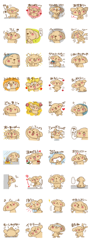 限りなく人間に近い犬、トイプードルのぷう太郎スタンプの第2弾です。第一弾もよろしくね♪satoco より発売